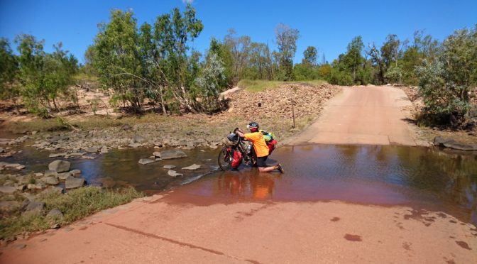 Left the beautiful Butterfly Springs after filling water bottles from the small cascade flowing from cracks in the rocky tableland above – lovely clear clean cool water.
