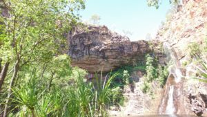 Getting a bit toe-y now as the end of the trip gets closer. Up and off across the tableland to the Tolmer Falls lookout. The falls and gorge are home to endangered bats so no entry but an interesting enough walk through the scrub at the top. Then a fast descent off the tableland to the turnoff to the Litchfield-Daly River 4WD track that runs down the west side of the Litchfield NP.