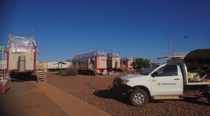 We arrived at Paraburdoo about 4 pm. This is completely a mining town, one of the first in the iron industry. We stayed at the big workers camp for non-company contract workers. Basically a lot of single bed dongas placed around a toilet and shower block. As all the ground seemed to be gravel we rolled out our sleeping bags on the rubber mat surfacing the children’s playground!