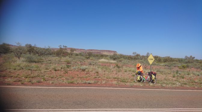 This was a hard day for me. As usual we set a quick pace for the first 10 kms or so before reality set in, compounded by 20 kms of almost continuous climbing to the divide between Paraburdoo and Tom Price. I was fully wrecked by the time Bruce called lunch at the highest point of the day and offered a handful of almonds to power me up again. After that it was mostly downhill to the Tom Price/Newman turnoff and then slightly uphill to Tom Price itself.