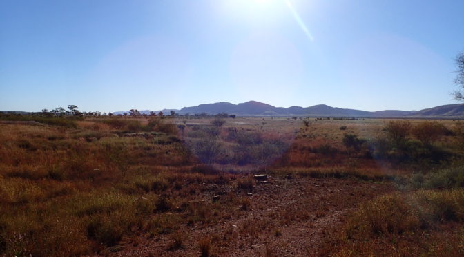 Later on we saw Mount McCrae in the west. This was the site of the first pastoral lease taken out in the Pilbara; it was taken out by the great-grand-dad of Jane, who planned to be the third rider in our Karijini Kapers but pulled out due to failure of her front wheel spokes and getting a better offer to be guest of honour at the Roebourne Picnic Horse Races.