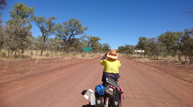 A few kilometres on from the turnoff Bruce flagged down Jerry, a young bloke in a Toyota troopy who agreed that both of us could use a lift to Mount Barnett. We had to take the right-hand pedals off our bikes to fit in between Jerry’s bed and the cupboard but we got them in. Then Bruce and I got to sit very close together and get to know each other better for the 100 km to Mount Barnett. God bless Jerry.