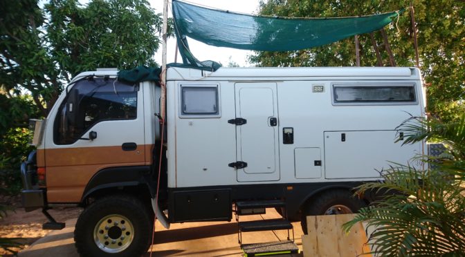 Peter and Helen rigged up their trailer, loaded my bike and gear and very generously gave me a lift the 230 km to Broome. Their excuse was that they were going anyway to Bunnings to get bolts and fittings to put solar panels on the 4WD, 4 ton campervan (impressive kit, hermetic door and window seals so that it doesn’t fill with fine red dust ‘outback’) but in reality it was to get me to the airport for my flight back to Perth and to be close to the bigger hospital in Broome.