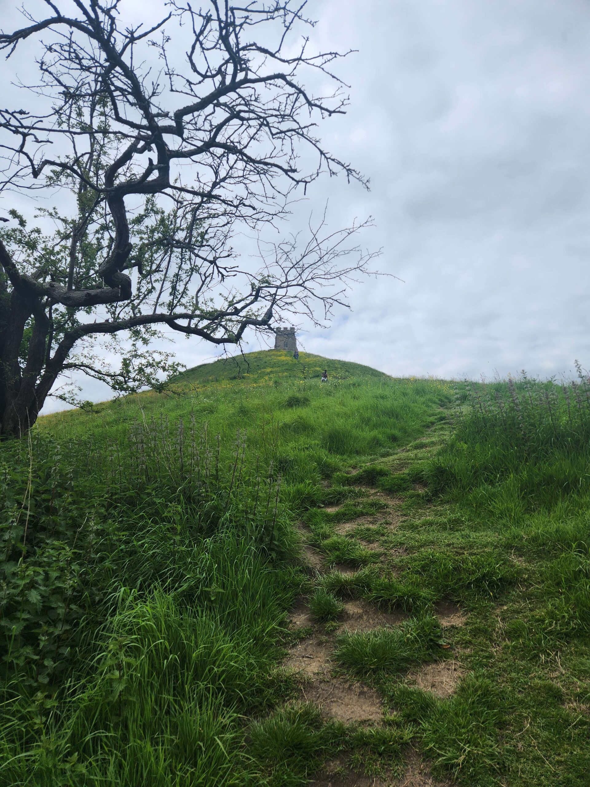 We were late due to a prolonged stop in Glastonbury for lunch, to comment that the many hippies and hippie shops there were the same as 40 years ago. Only those hippies now had their daughters with them. Ride halfway up the Tor, then walk to the top, feel the power (not from Hinckly nuclear power station visible in the distance from the Tor) of the Ley lines and then circle the tower. Lots of hippie dippie people doing the mystical power thing.
