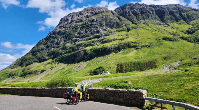 The Hotel at Bridge of Orchy was picturesque and hand nice carrot cake, Tyndrum was a busy bunkhouse centre for the West Highland Way, Rannoch Moor was pretty and natural.