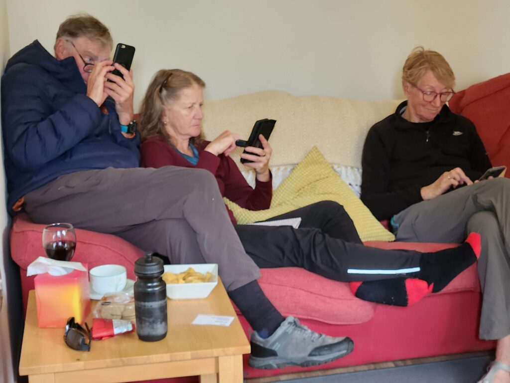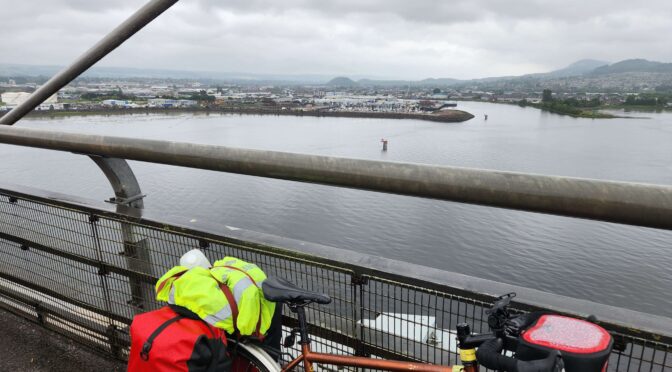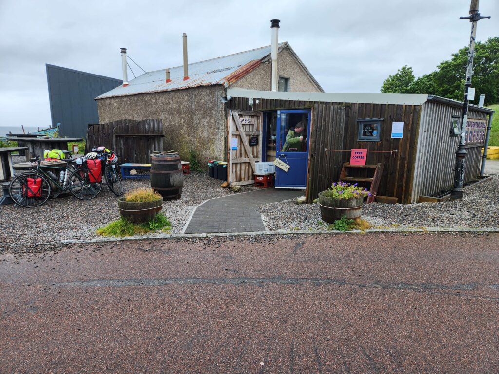 Interesting sleeping arrangements again but in a nice out of town BnB. A day of light winds and rain, gentle slopes, and generally warmish temperatures (12-14C) providing you were out of the wind. So said we were freezing at Cromarty – Christine’s face was going blue, I was fumbling my coffee cup and Hillary wouldn’t leave the ferry cabin until the bikes were ready to go off the boat, John threatened to put on some warmer pants.