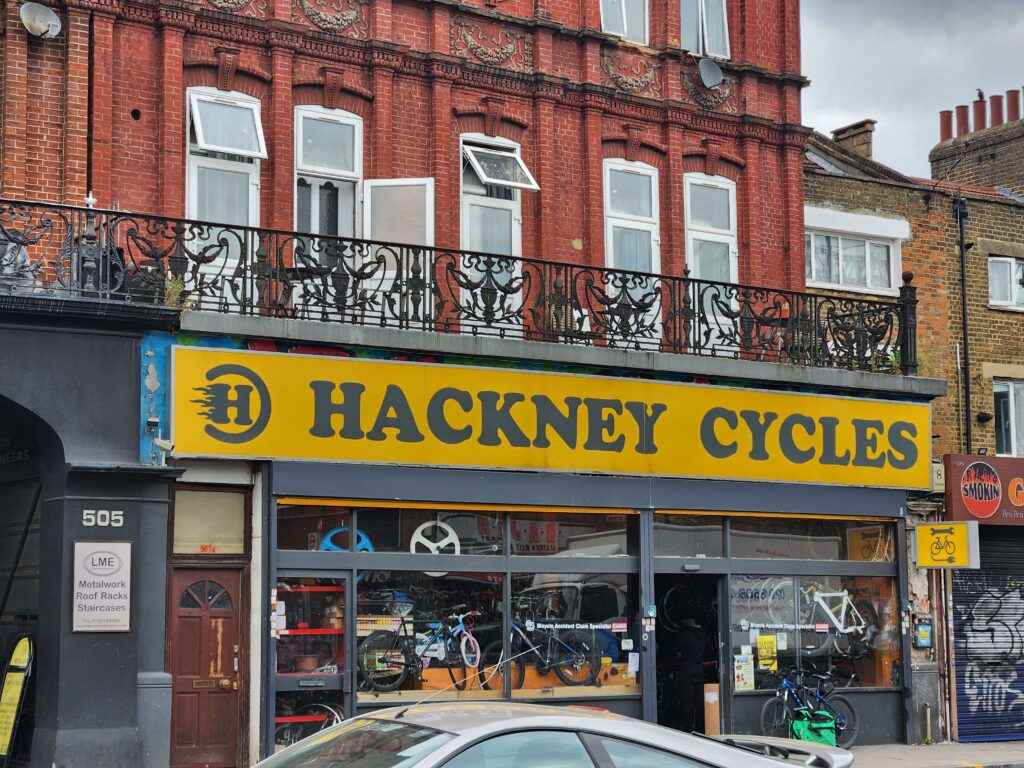 The third day was find some bike boxes where after a few false starts at ‘bike shops’ that turned out to be electric delivery bike repair shops one kind knowledgable owner directed me to the Hackney Bicycle Shop who said to help myself from the pile of bike boxes out the back.