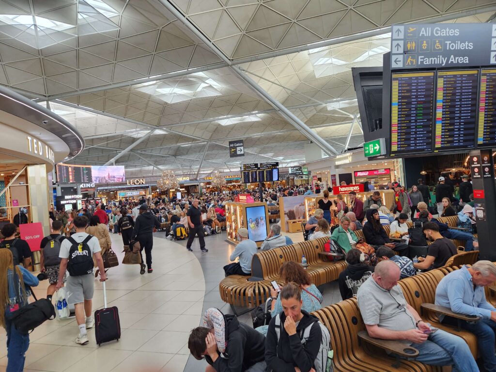 Painless trip out to the airport, but painfully busy in the departure lounge as now peak holiday season. Half of Britain is heading to Spain, the other half coming back.