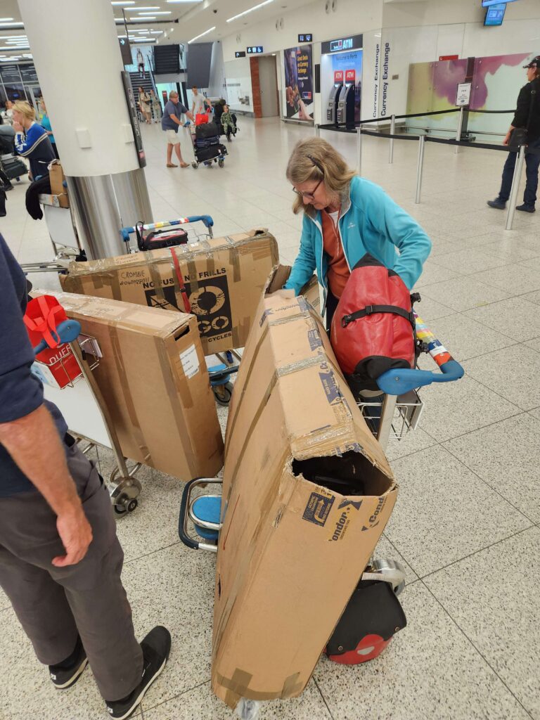 Some frantic efforts trying to get from our flat in Tower Hamlets to Liverpool Street Station for the train to Stanstead. John and Christine walked her boxed bike to the station, but I caught a black cab which took about 20 mins to go a mile, same as walking.