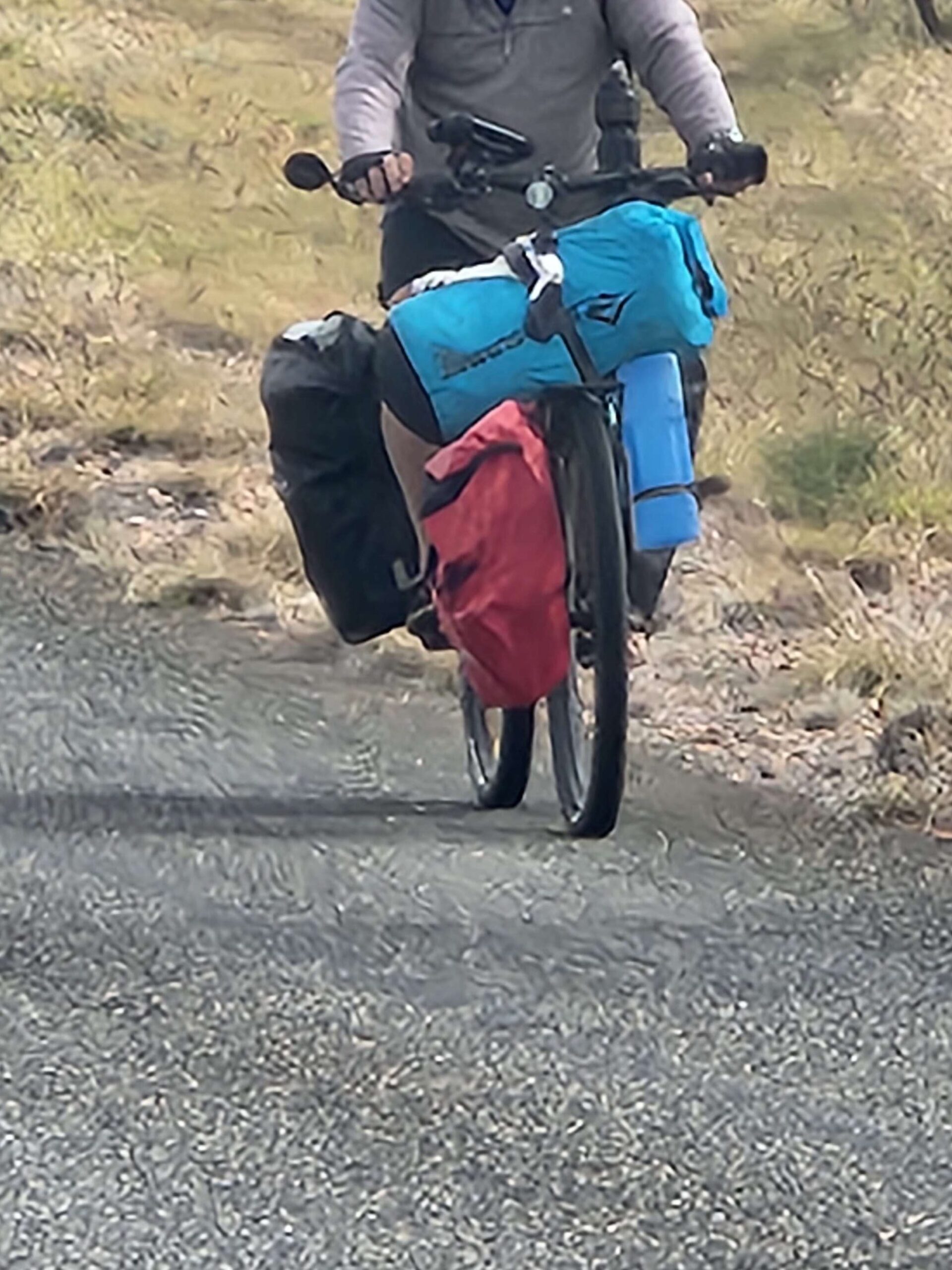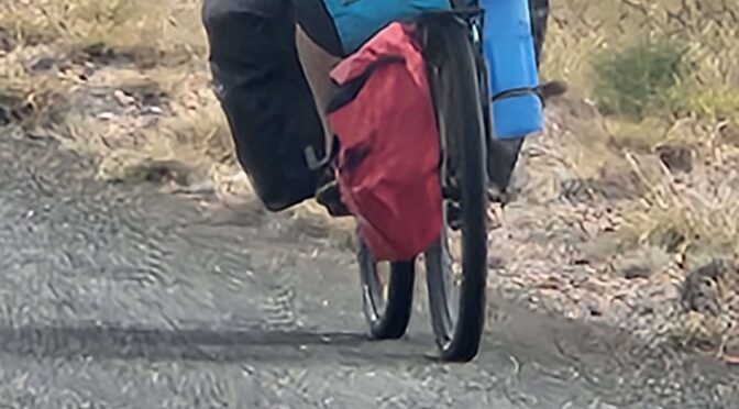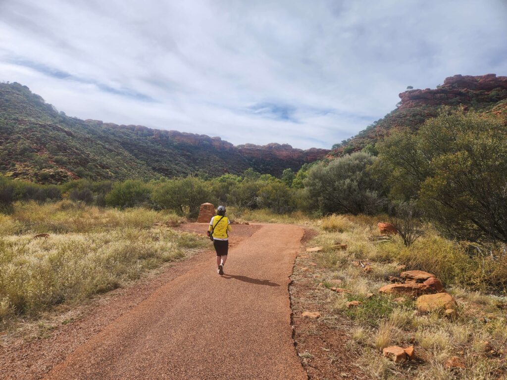 This is it folks, nearly where the rubber leaves the road and hits dirt! Easy 36 km to Kings Canyon interrupted by meeting a (seeming) septuagenarian cyclist on the best set up Giant gravel bike who was riding the Mereenie Loop counter-clockwise. He skipped the gravel road bit due to the rain and cold.