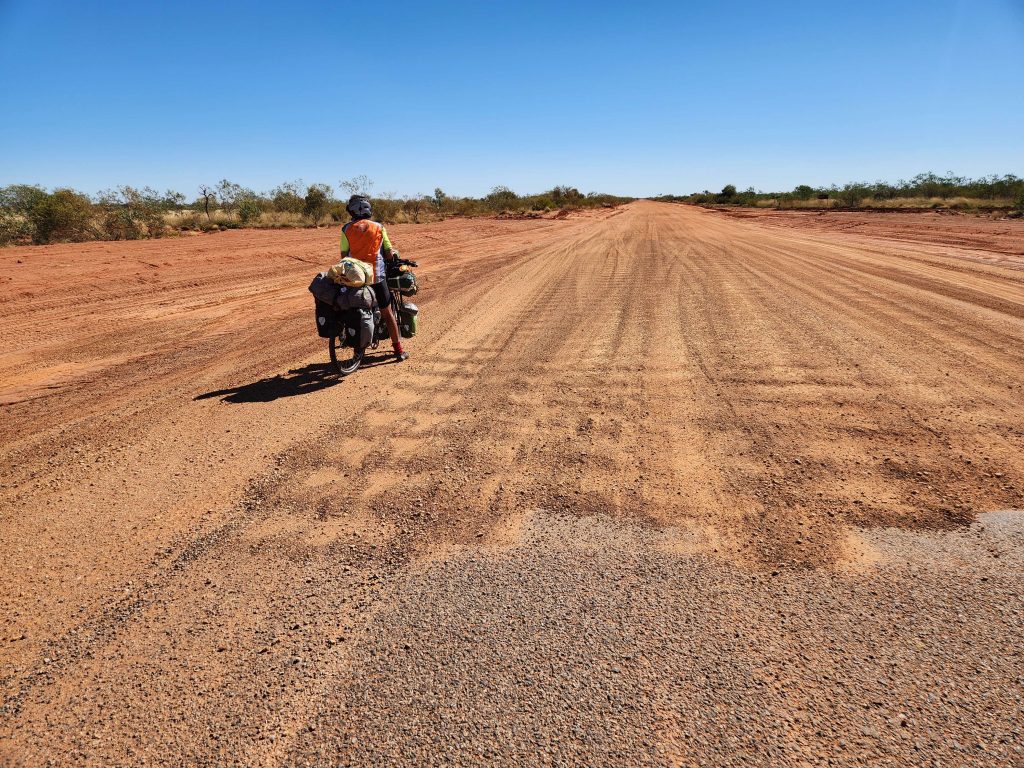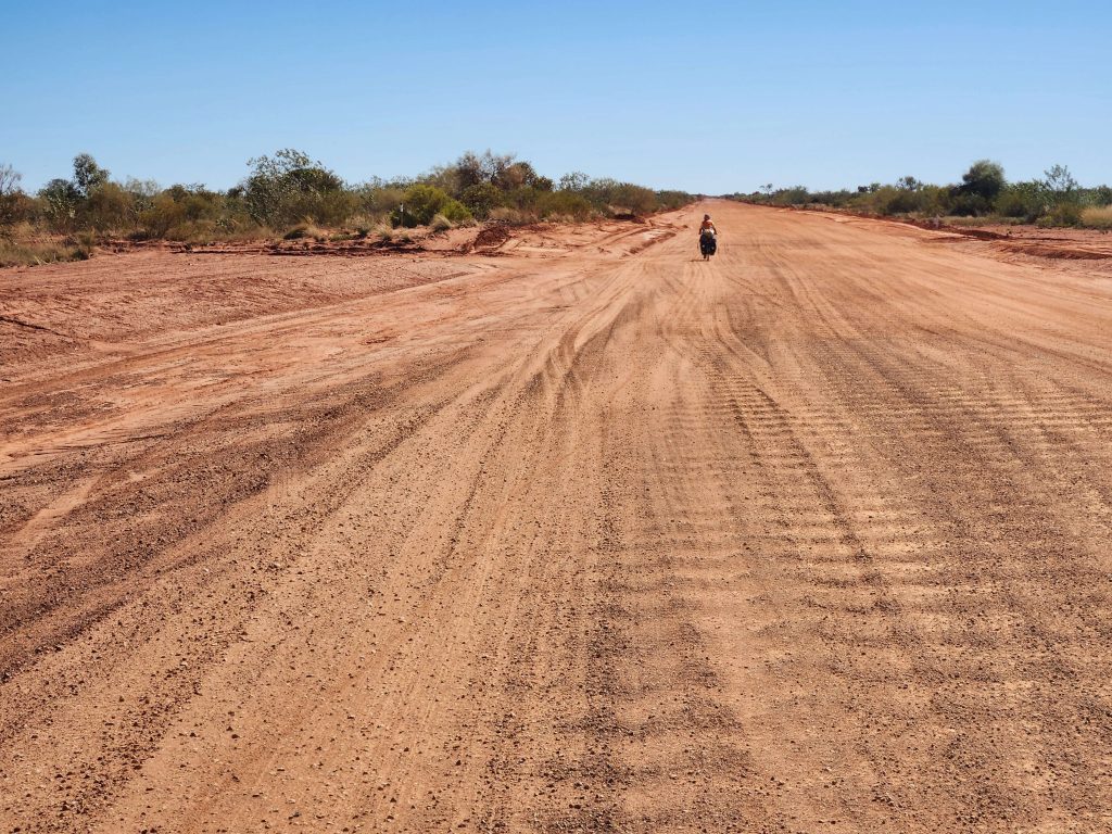 Don left his gloves at the start of the dirt and dropped one of his fat tyres on the corrugations. He spent an hour riding back from Renahans Bore rest area to get them.