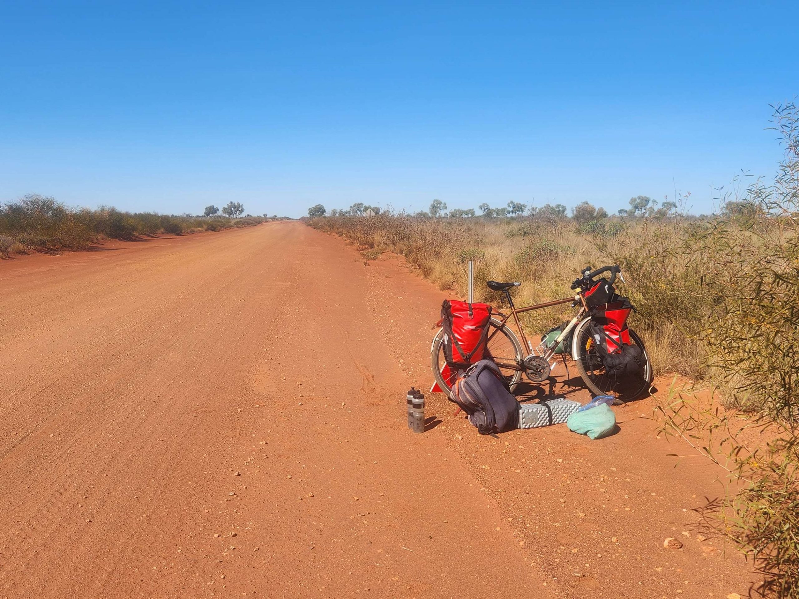 Day 28 TT 60.8km but this includes about 1.5km total going into and out of Rabbit Flat Road House (CLOSED since 2011) . Don went past me while I was at RF, he spent rest of 35km trying to catch me while not realising I was behind him. Both of us were thinking “please stop for the night, I am exhausted”.