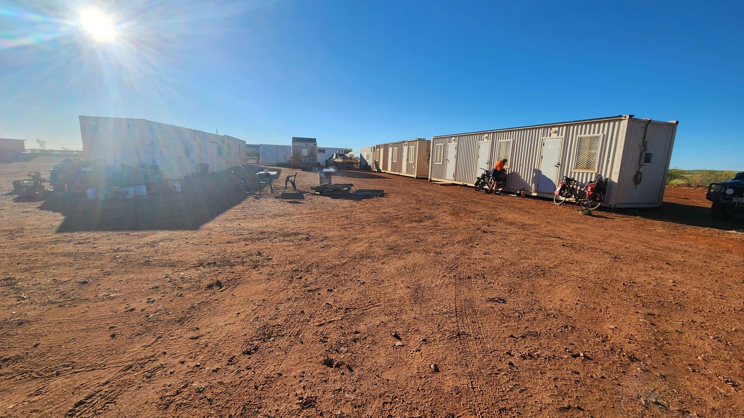 But a miracle happened. We couldn’t find anywhere open to camp because of the dense scrub and spinifex so rode up to a semi-permanent road workers camp to ask if we could camp in their car park without getting run over. They checked with their boss back in Perth and he said to offer us their unused dongas with showers and beds, also meals and a washing machine. To riders out of the desert this is heaven and the road workers are a miracle. The crew is Fly In-Fly Out (FIFO) from Perth rebuilding roads to Balgo and beyond after the summer wet.
