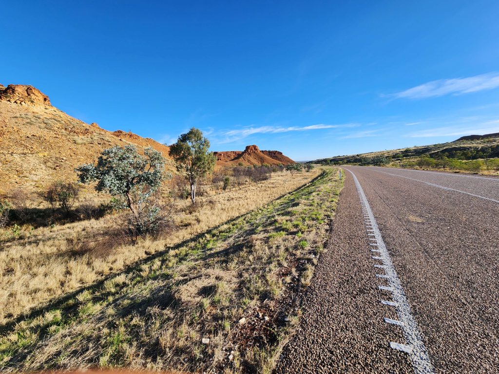 Road pretty busy with caravans and empty stock trucks going both ways.