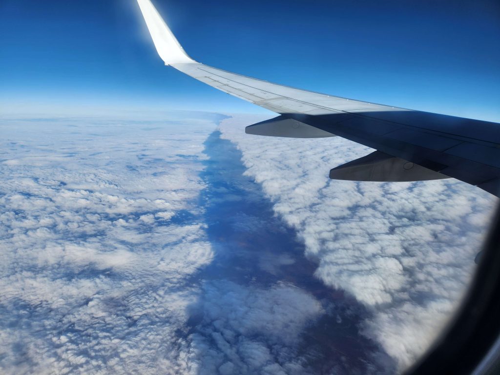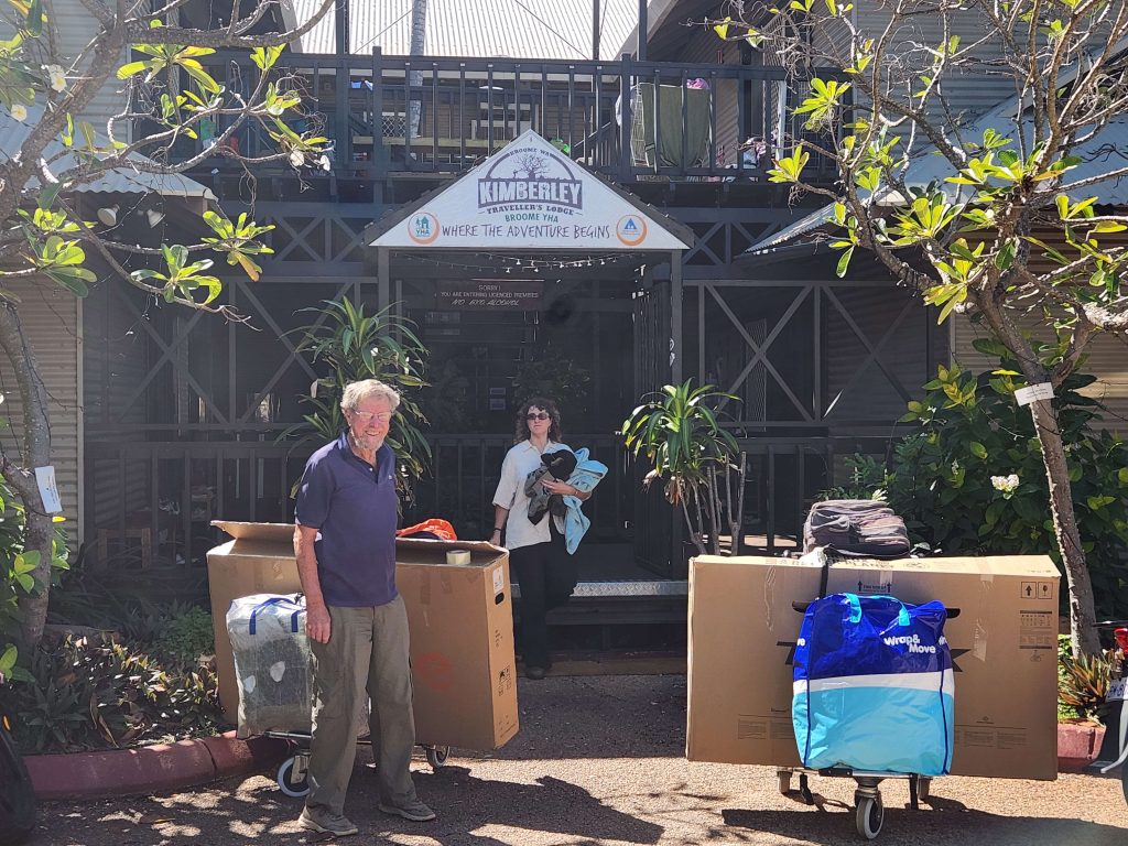 Grabbed a couple of baggage trolleys from the airport and took ’em the 900m back to the hostel. Loaded our gear and walked back to the airport. Very convenient.