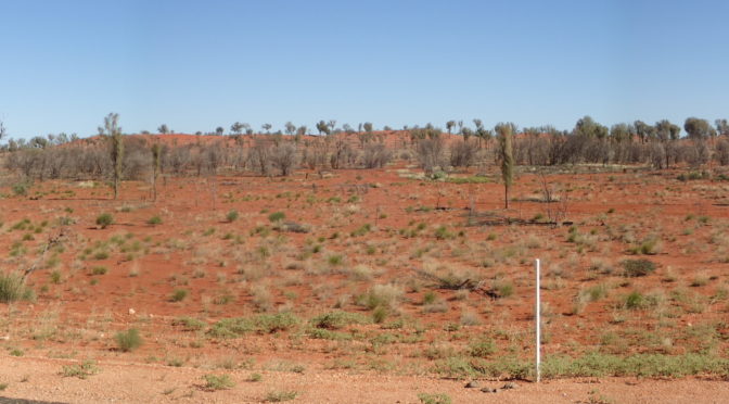 The big change was the transition from mostly natural desert west of Uluru to pastoral country grazed by cattle to the east. While rainfall was increasing the amount of vegetation cover decreased due to the grazing. Very noticeable was how the grazing was managed (I understand it is now based on simulating the episodic heavy grazing experienced by the African savannah under the herds of wilderbeest) – an area/paddock would be grazed almost to the ground then the stock (usually) moved off and the vegetation left to recover rather than being grazed continually at a lower intensity. Seems a more natural system?