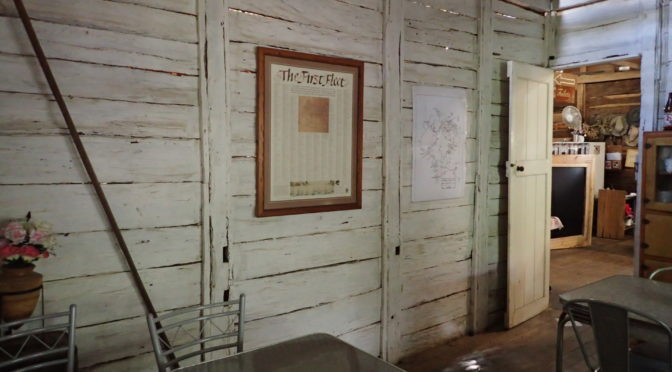 Eventually the road rose up to the little village of Herveys Range (not much there folks, no shop, school, pub or campground). Almost at the top of the range was a turnoff for a half kilometre run to a tea house in a century old cabin made of hand hewn boards.