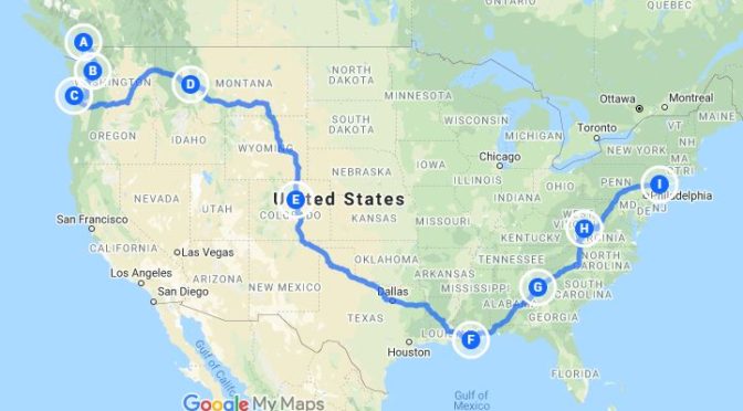 The route is based on the Adventure Cycling TransAmerica and other long distance cycling routes but will undoubtedly include a few variations of my own.